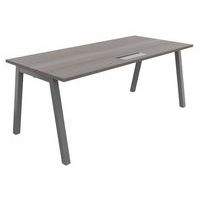 Plateau mélaminé ép. 25 mm, équipé d'un top access de finition assortie au piétement Chant ABS antichoc 2 mm Piétement métallique en arche composé de pieds carrés de section 50 x 50 mm obliques, finition époxy laqué. Vérins de stabilisation pour compenser les défauts de planéité du sol (course de réglage 10 mm)
