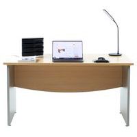A compléter d'un plateau d'extension avec pieds ou d'un caisson hauteur bureau ou d'une extension goutte d'eau Structure panneau de particules Plateau épaisseur 25 mm, hauteur 72 cm Voile de fond aggloméré épaisseur 16 mm, de forme courbe, permettant le passage des câbles électriques Pieds panneaux équipés de vérins de réglage