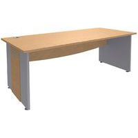 A compléter d'un plateau d'extension avec pieds ou d'un caisson hauteur bureau ou d'une extension goutte d'eau  Structure panneau de particules  Plateau épaisseur 25 mm, hauteur 72 cm  Voile de fond aggloméré épaisseur 16 mm, de forme courbe, permettant le passage des câbles électriques  Pieds panneaux équipés de vérins de réglage