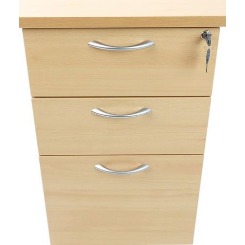 Bureau droit Quatuor sur caisson, prêt à monter avec notice. Patins de réglage sous le caisson. Pied avec vérins de réglage. Pied métal forme L avec passage de câbles sous carter amovible. Caisson porteur à positionner à droite ou à gauche. Caisson porteur profondeur 8 cm, 3 tiroirs dont 1 tiroir pour dossiers suspendus. Plateau épaisseur 25 mm, avec obturateur passe câbles. Hauteur et profondeur bureau 72 x 8 cm. Plateau épaisseur 25 mm, avec obturateur passe câbles.