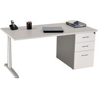 Bureau droit Quatuor sur caisson, prêt à monter avec notice. Patins de réglage sous le caisson. Pied avec vérins de réglage. Pied métal forme L avec passage de câbles sous carter amovible. Caisson porteur à positionner à droite ou à gauche. Caisson porteur profondeur 8 cm, 3 tiroirs dont 1 tiroir pour dossiers suspendus. Plateau épaisseur 25 mm, avec obturateur passe câbles. Hauteur et profondeur bureau 72 x 8 cm. Plateau épaisseur 25 mm, avec obturateur passe câbles.