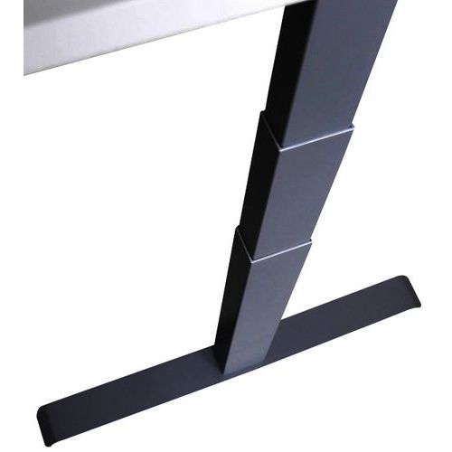 Bureau électrique 180 x 80 cm piétement Graphite. Réglage en hauteur, utilisation assis-debout avec une hauteur de travail de 64,5 à 129,5 cm. Pied en T, offre une stabilité accrue et un design moderne. Bureau avec piétement télescopique, hauteur ajustable de 62 à 127 cm sans plateau. Équipé d'un moteur par pied, intégré dans les colonnes à deux niveaux, pour un réglage en douceur et sans effort.