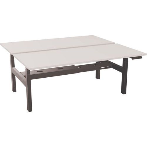 Bureau motorisé en structure partagée ajustable selon vos besoins. Doté d'une goulotte double intégrée permettant de cacher les boitiers prises et câbles. Opté de plateaux pré-percés permettant de positionner 2 obturateurs optionnels.