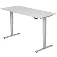 Bureau électrique Série XDSM 180cm. Plateau épaisseur 25mm et rebord renforcé. Piètement en T argenté avec mémoire de positions. Dispose d'un réglage électrique progressif de la hauteur : 63,5-128,5cm. Avec une commande électrique à 2 niveaux, 2 moteurs. Capacité charge: 80kg dynamique, 120kg statique. Livré non-monté, montage simple.