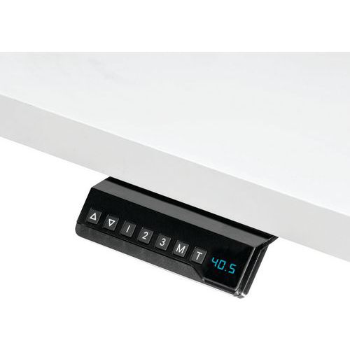Bureau réglable en hauteur Cambio pour dynamiser et ajouter du mouvement à vos journées de travail. Ajustement de la hauteur sans effort grâce à 2 moteurs électriques Alternez facilement les positions avec les 3 mémoires programmables. Ajustement de la hauteur allant de 645 à 1305mm. Dispositif intégré de sûreté anticollision. Dissimulez vos câbles à l'aide d’une goulotte et des deux obturateurs intégrés. Charge maxi (kg) : 100 kg