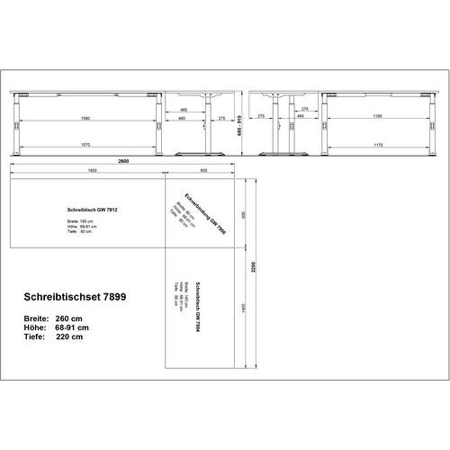 Bureau réglable en hauteur mécanique GW-Agenda - 260cm - Germania