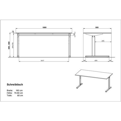 Bureau réglable en hauteur mécanique GW-Profi 2.0 - Germania