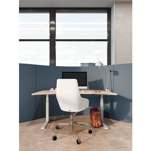 - Colonne à deux niveaux, assis-debout, hauteur réglable électriquement.