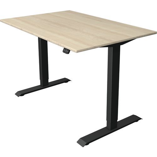 Plateau de bureau 19mm d'épaisseur, en bois mélaminé de classe E1 avec bords en ABS (2 mm) fonction mémoire Cadre en T, couleur anthracite Hauteur réglable électriquement de 740 à 1230 mm Mécanisme d'entraînement et d'arrêt en douceur Capacité de charge statique de 70 kg, vitesse de réglage de la hauteur de 25 mm/seconde