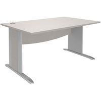 Bureau droit Quatuor avec pieds en L, bois massif avec sérigraphie avec vérins de réglage. Voile de fond épaisseur 16 mm de forme courbe pour permettre le passage de câbles. Plateau hauteur 72 cm en particules épaisseur 25 mm revêtu décor mélaminé. Structure panneau de particules. Chants antichocs. Livré prêt à monter avec notice. A compléter au choix d'un plateau d'extension avec pieds, d'un caisson hauteur bureau ou d'une extension goutte d'eau.