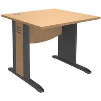 Bureau droit Quatuor avec pieds en L, bois massif avec sérigraphie avec vérins de réglage. Voile de fond épaisseur 16 mm de forme courbe pour permettre le passage de câbles. Plateau hauteur 72 cm en particules épaisseur 25 mm revêtu décor mélaminé. Structure panneau de particules. Chants antichocs. Livré prêt à monter avec notice. A compléter au choix d'un plateau d'extension avec pieds, d'un caisson hauteur bureau ou d'une extension goutte d'eau.