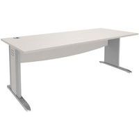Bureau droit Quatuor avec pieds en L, bois massif avec sérigraphie avec vérins de réglage. Voile de fond épaisseur 16 mm de forme courbe pour permettre le passage de câbles. Plateau hauteur 72 cm en particules épaisseur 25 mm revêtu décor mélaminé. Structure panneau de particules. Chants antichocs. Livré prêt à monter avec notice. A compléter au choix d'un plateau d'extension avec pieds, d'un caisson hauteur bureau ou d'une extension goutte d'eau.