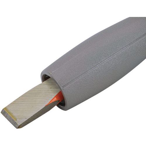 - Réaffûtable, avec protecteur de main en plastique.