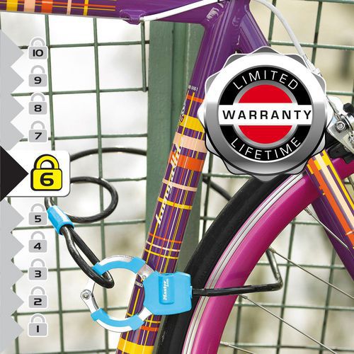 Fléxibilité : La menotte s'attache à de nombreux points d'ancrage (grillage, portail, poteau) et le cable permet de sécuriser les objets les plus volumineux. .