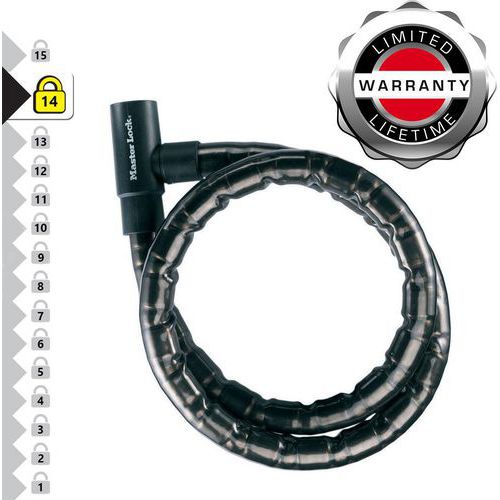 | Intitulé du produit | Câble antivol à clé en acier, Ø: 22 mm, Longueur: 1200 mm, Nb de clés: 4, Poids du produit: 0.968 kg |