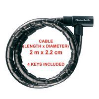 Intitulé du produit | Câble articulé à clé antivol, Ø: 22 mm, Longueur: 2000 mm, Nb de clés: 4, Poids du produit: 1.681 kg |