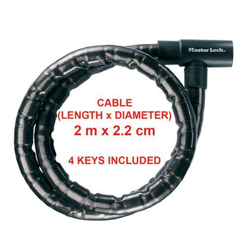 | Intitulé du produit | Câble articulé à clé antivol, Ø: 22 mm, Longueur: 2000 mm, Nb de clés: 4, Poids du produit: 1.681 kg |