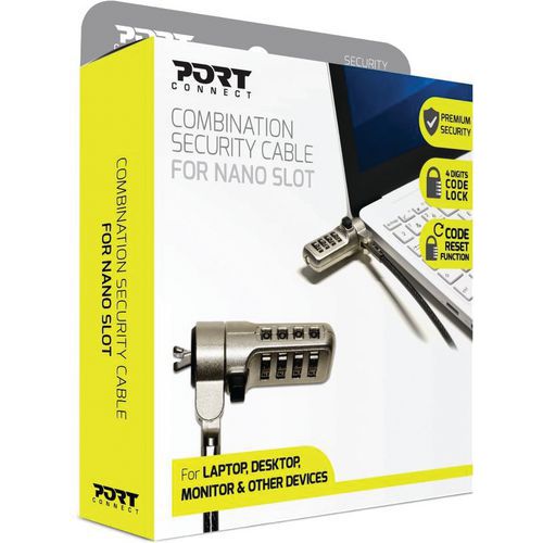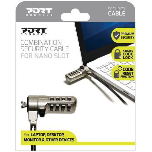 | Intitulé du produit | Câble de sécurité, Longueurs: 2 m, Modèle: A code, Type de serrure: Nano slot, Câble ép.: 4.4 mm |