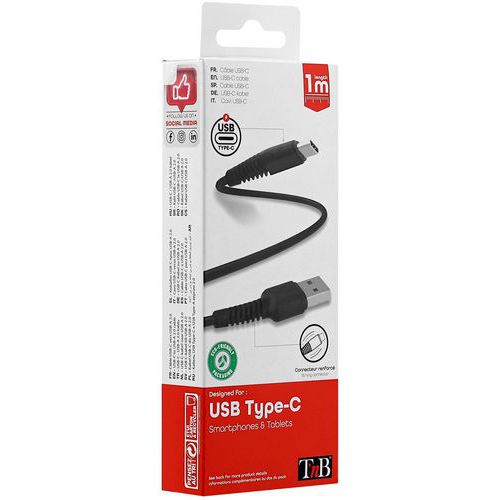 Câble USB/USB-C. Fonctions charge & synchronisation. Connecteur renforcé pour résister à l'utilisation intensive. Connectivité USB-A / USB-C.