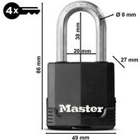 Intitulé du produit | Cadenas à clé en acier laminé Excell M115EURTLF, Longueur: 46 mm, Nb de clés: 4, Anse Ø: 8 mm |