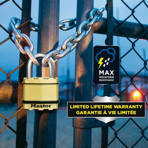 Protection Dual-Armor™: cadenas avec corps en acier laminé et finition en laiton résistant aux intempéries, qui protège contre la neige, la pluie, la poussière, la boue, l'encrassement et le sel..