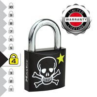 Intitulé du produit | Cadenas à clé en métal imprimé tête de mort 3430EUR, Longueur: 30 mm, Nb de clés: 2, Anse Ø: 5 mm |