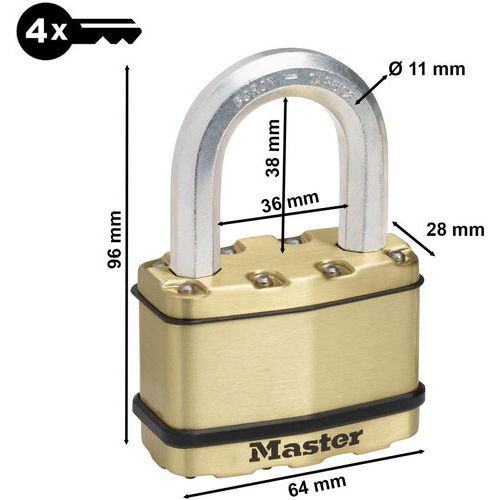 | Intitulé du produit | Cadenas à clé protection extérieure Excell M15BEURDLF, Longueurs: 47 mm, Nb de clés: 4, Anse Ø: 11 mm |