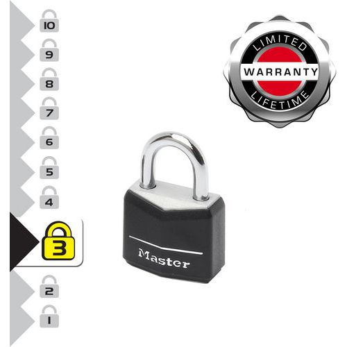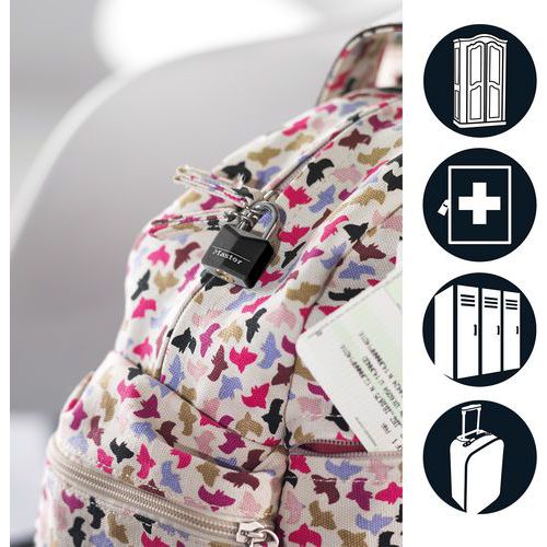 | Intitulé du produit | Cadenas à clés en aluminium massif, Coloris: Noir, Nb de clés: 2, Anse Ø: 3 mm, Hauteur: 1.1 cm |