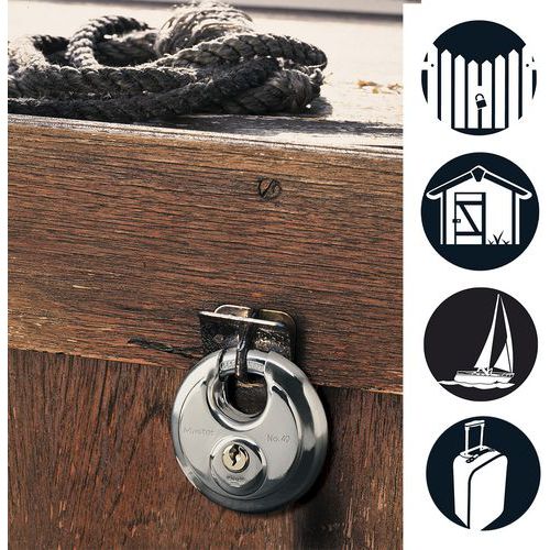 | Intitulé du produit | Cadenas à clés en inox, Coloris: Argent, Anse Ø: 9 mm, Hauteur: 1.6 cm, Nb de goupilles: 4, Matériau: Inox |
