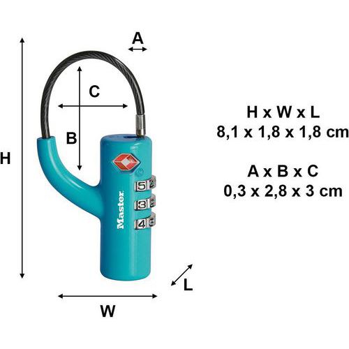 | Intitulé du produit | Cadenas à code pour bagage 4717EUR, Anse Ø: 3 mm, Nb de molettes: 3, Longueurs: 81 mm, Hauteur: 3.1 cm |