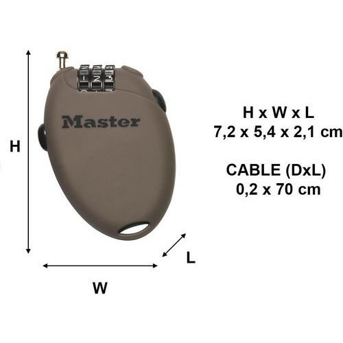 | Intitulé du produit | Cadenas à combinaison avec câble rétractable 4603EURD, Ø: 2 mm, Longueur: 54 mm, Poids du produit: 0.051 kg |