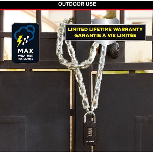 | Intitulé du produit | Cadenas à combinaison et clé de secours, Anse Ø: 8 mm, Nb de molettes: 4, Ouverture largeur: 48 mm |