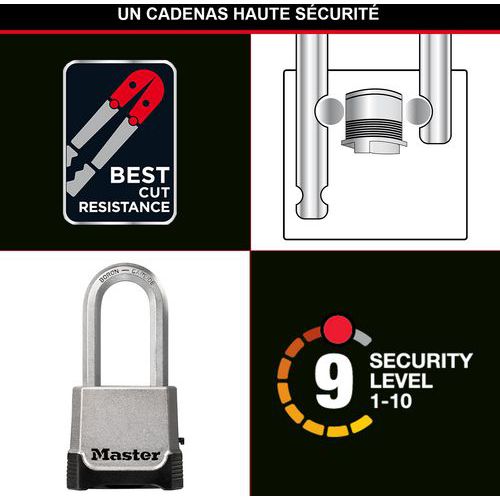 | Intitulé du produit | Cadenas à combinaison Excell nºM176, Anse Ø: 9 mm, Nb de molettes: 4, Ouverture largeur: 56 mm |