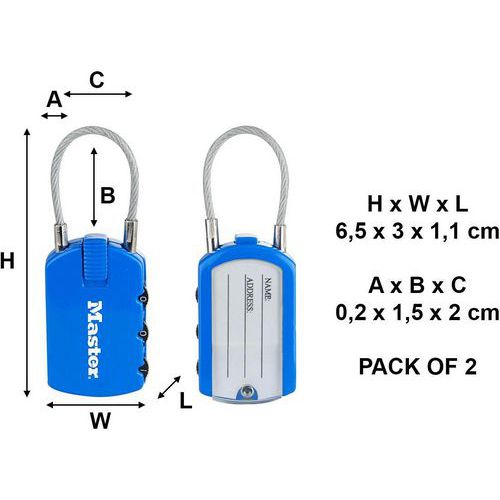 | Intitulé du produit | Cadenas à combinaison porte-adresse multicolor 4684EUR, Anse Ø: 2 mm, Nb de molettes: 3, Longueurs: 60 mm |