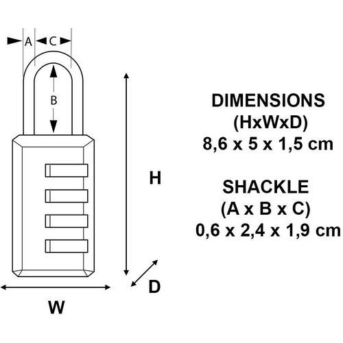 | Intitulé du produit | Cadenas à combinaison programmable assorti 653EURD, Anse Ø: 6 mm, Nb de molettes: 4, Longueurs: 86 mm |