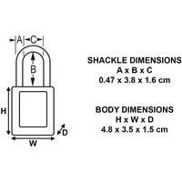 Intitulé du produit | Cadenas de consignation à loquet, Coloris: Rouge, Largeur: 35 mm, Anse Ø: 4.76 mm, Nb de clés: 1 |