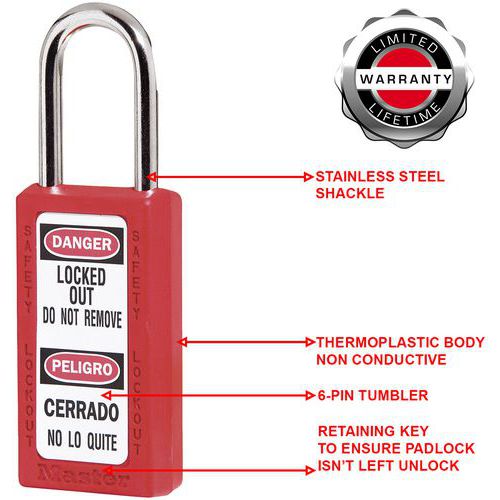 Cadenas de consignation corps haut, Coloris: Rouge, Largeur: 38 mm, Hauteur: 7.6 cm, Anse Ø: 6 mm