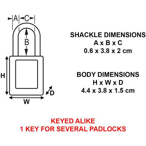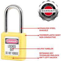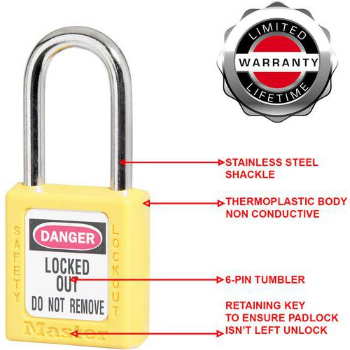 Cadenas de Consignation en Thermoplastique et anse en acier Ø 6 mm pour installations mécaniques, s'entrouvrant.