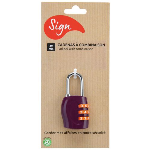- Cadenas de couleur à combinaison 3 chiffres SIGN pour sécuriser vos affaires.