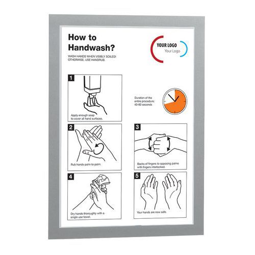 Cadre d'affichage adhésif Duraframe® pour surface lisse. Grâce au dos adhésif repositionnable, le cadre se colle et se décolle sur toute surfaces lisses et rigides, comme des murs, des portes… Lisibilité recto-verso du document sur une surface vitrée. Actualisation simple et rapide, maintien des documents grâce à l'encadrement magnétique. Utilisation au format portrait ou paysage. Solution idéale pour afficher les informations générales et obligatoires d'entreprise, les promotions, les règlements intérieurs, les notes d'information etc. Fabriqué en UE Garantie client : 2 ans
