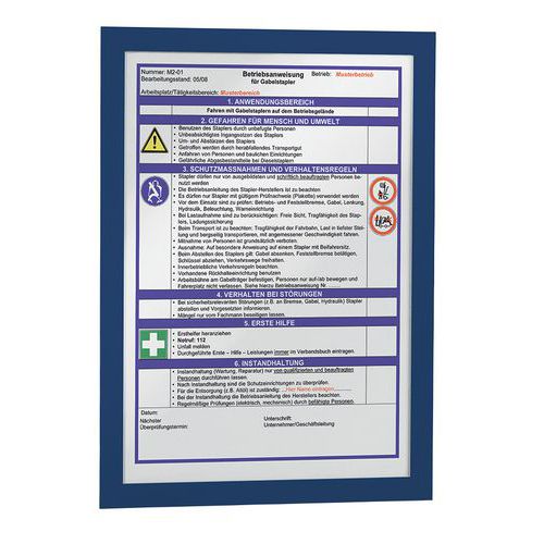 Cadre d'affichage adhésif Duraframe® pour surface lisse. Grâce au dos adhésif repositionnable, le cadre se colle et se décolle sur toute surfaces lisses et rigides, comme des murs, des portes… Lisibilité recto-verso du document sur une surface vitrée. Actualisation simple et rapide, maintien des documents grâce à l'encadrement magnétique. Utilisation au format portrait ou paysage. Solution idéale pour afficher les informations générales et obligatoires d'entreprise, les promotions, les règlements intérieurs, les notes d'information etc. Fabriqué en UE Garantie client : 2 ans