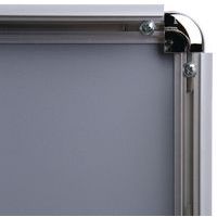Support d'affichage résistant en aluminium. Facilité d'utilisation: le support d'affichage s'insert et se retire aisément en ouvrant et refermant les 4 bordures profilées du cadre en aluminium. Le contenu d'affichage reste protégé et accessible. Angles arrondis pour davantage de sécurité.