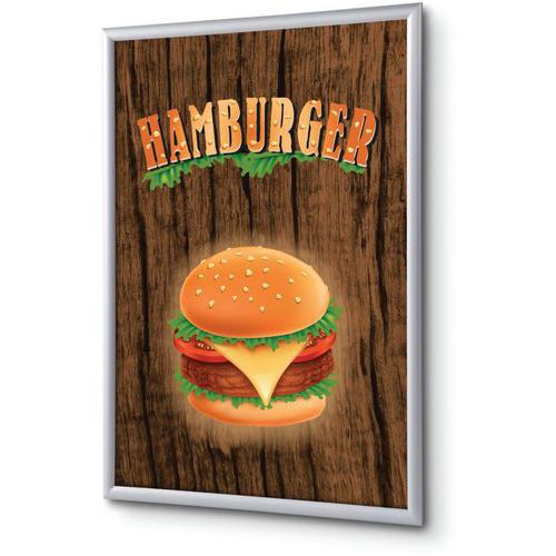Cadre complet Clic-clac Hamburger - Anglais. Ensemble complet de cadres avec fixation et visuel. Visuel standard. Papier Premium 135 g/m2 pour poster, format A1. Profilé de 25 mm avec coins biseautés.