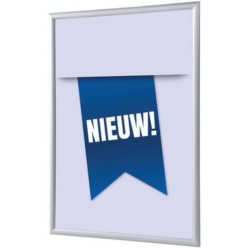 Cadre complet Clic-clac Nouveau - Néerlandais. Ensemble complet de cadres avec fixation et visuel. Visuel standard. Papier Premium 135 g/m2 pour poster, format A1. Profilé de 25 mm avec coins biseautés.