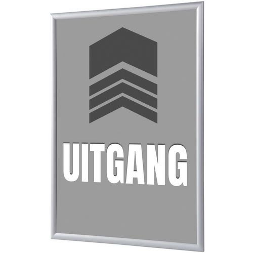 Cadre complet Clic-clac Sortie - Néerlandais. Ensemble complet de cadres avec fixation et visuel. Visuel standard. Papier Premium 135 g/m2 pour poster, format A4. Profilé de 25 mm avec coins biseautés.