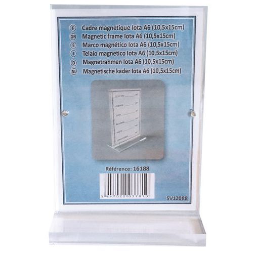 Cadre photo ou porte affichette magnétique en forme T, Matériau: Plexiglas, Coloris: Transparent