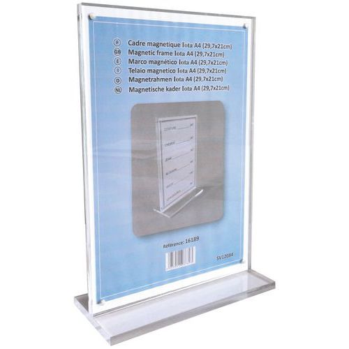 Cadre photo ou porte affichette magnétique en forme T, Matériau: Plexiglas, Coloris: Transparent