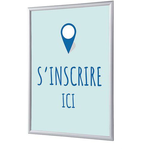 - Le cadre à encliqueter est un élégant cadre d’affiche argenté dont la largeur du profil est de 25 mm.