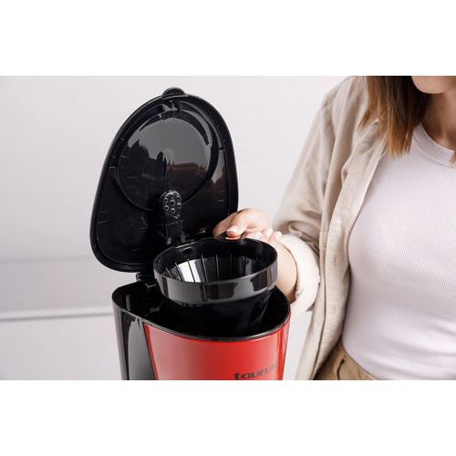 - Équipée d’une carafe en verre graduée, d’un filtre réutilisable et lavable, ainsi que d’un système anti-goutte pour éviter les éclaboussures.