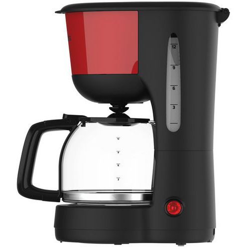 - Sa plaque chauffante maintient le café à bonne température et son réservoir d’eau visible facilite le remplissage.
